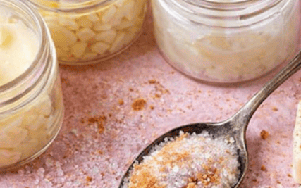 Zucker ist der eigentliche Peelinganteil. Er hilft dabei, abgestorbene Hautschüppchen sanft zu entfernen.